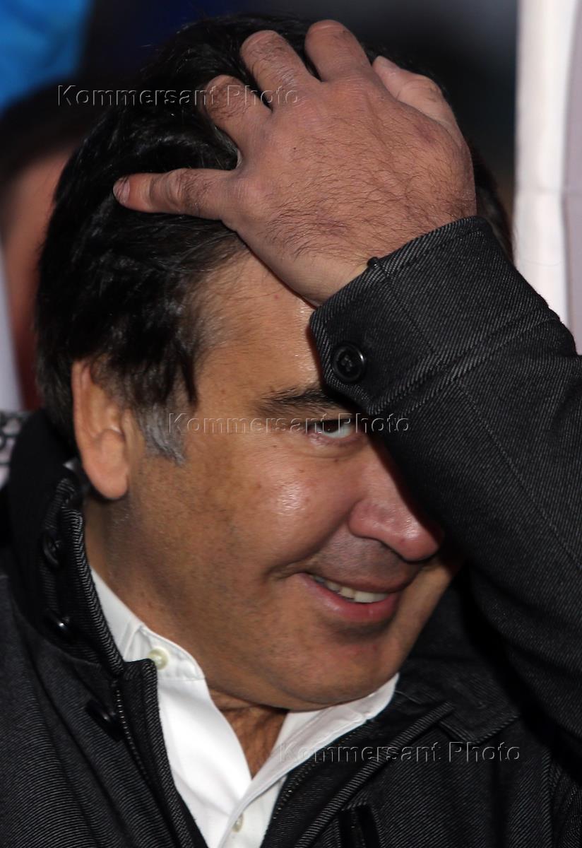 Акция в поддержку Грузии и против оккупации Россией Абхазии. Экс-президент Грузии Михаил Саакашвили во время проведения митинга.