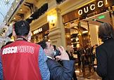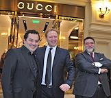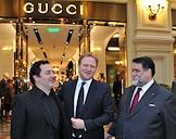 Слева направо: управляющий директор ОАО "Торговый Дом ГУМ" Теймураз Гугуберидзе, генеральный директор компании GM Gucci Russia Марко Вигано и председатель наблюдательного совета компании Bosco di Ciliegi Михаил Куснирович на церемонии открытия бутика Gucci в ГУМе.