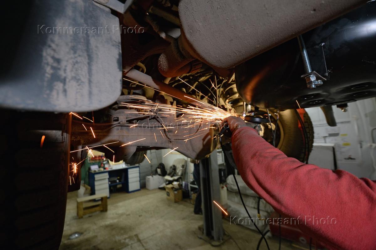 The scenical photography. Mounting of gas equipment on the Land Cruiser car.
