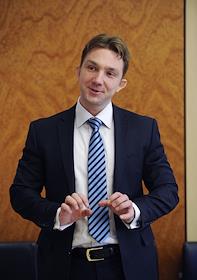 Директор департамента розничного бизнеса Банка Российский кредит Максим Соболев во время интервью.