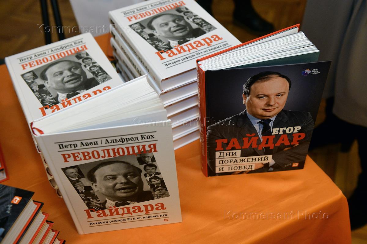 Церемония вручения Премии Егора Гайдара прошла в Театре юного зрителя. Книга Егора Гайдара "Дни поражений и побед" и книга Петра Авена и Альфреда Коха "Революция Гайдара".