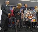 Фестиваль "Дни Арктики в Москве". Фотовыставка "Арктика" прошла в Мультимедиа Арт Музее. Слева направо: представитель в Совете федерации России от исполнительного органа государственной власти Тульской области Артур Чилингаров, директор Мультимедиа Арт Музея Ольга Свиблова и министр природных ресурсов и экологии России Сергей Донской во время церемонии открытия выставки.