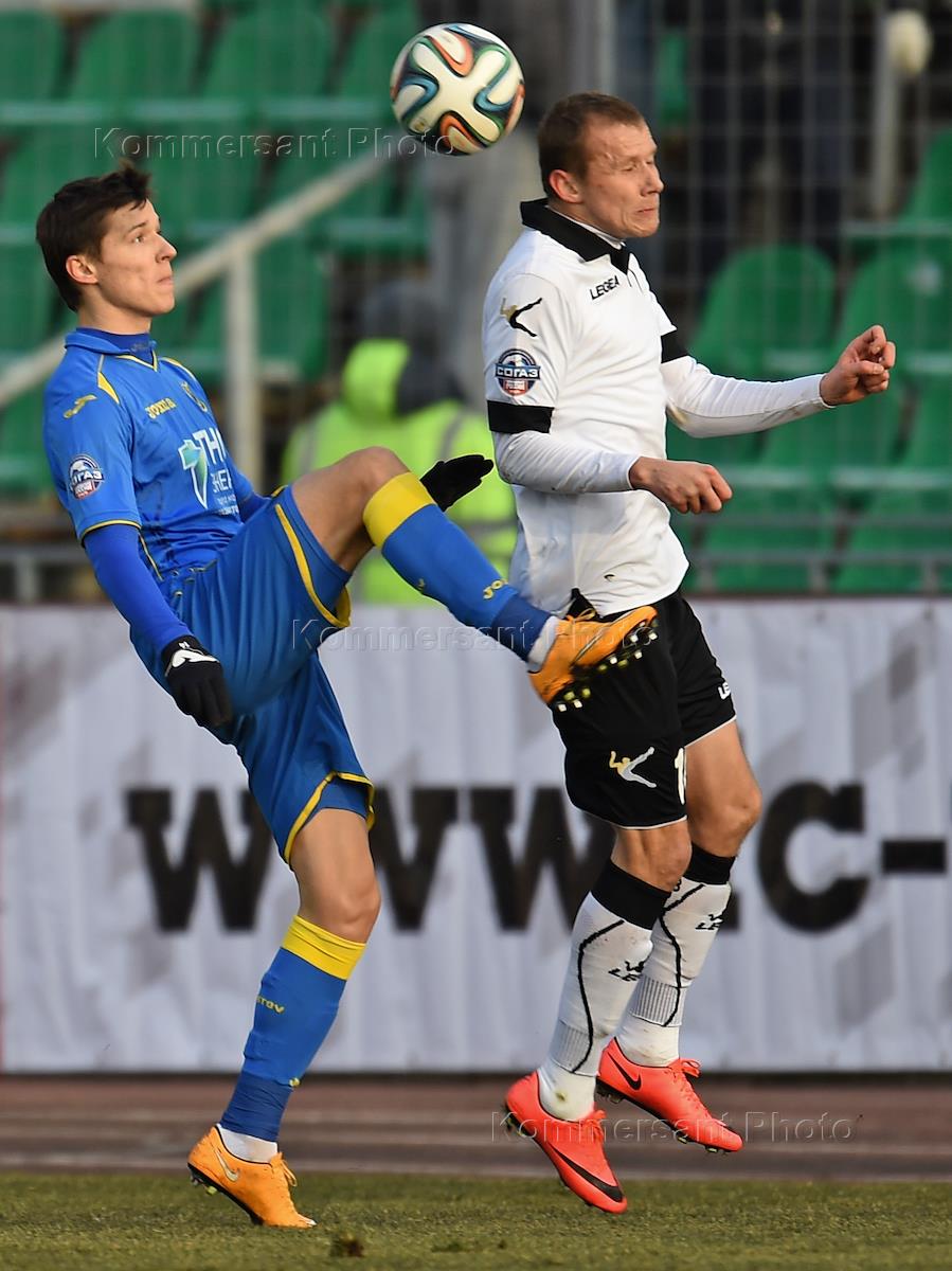 СОГАЗ - Чемпионат России по футболу. Премьер-Лига. 14 тур. Матч между командами "Торпедо" (Москва) - "Ростов" (Ростов-на-Дону) прошел на стадионе имени Э.Стрельцова. Футболисты Максим Григорьев (слева) и Владимир Рыков (справа) во время матча.