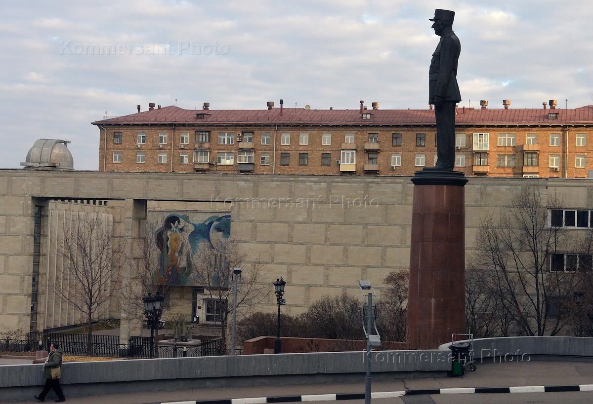 Виды Москвы. Памятник генералу, президенту Франции Шарлю де Голлю на площади у здания гостиницы "Космос".