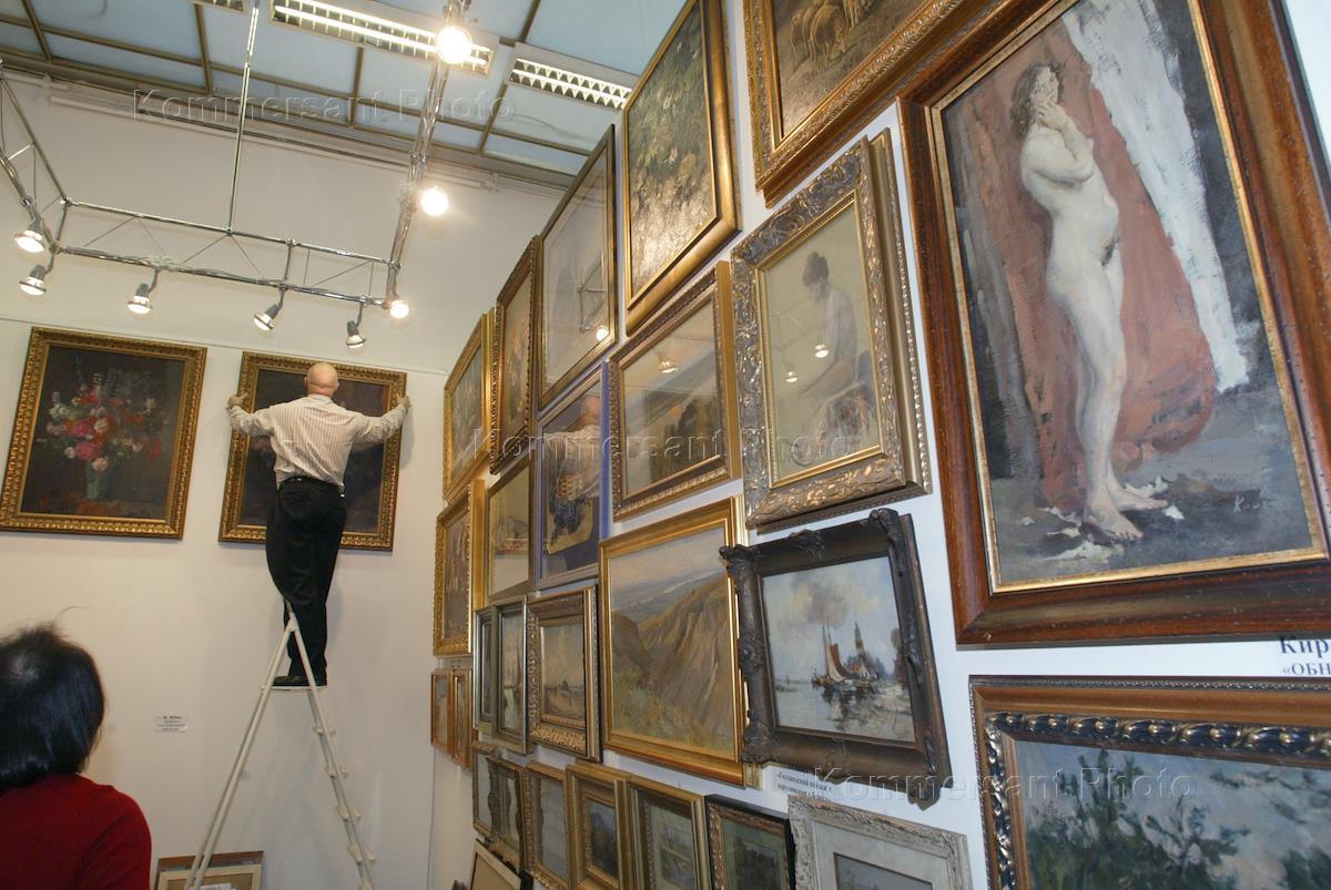 Last preparations for the opening of the 14th antiques salon "ReConTec" in the Central Artist House. There will be exposed antiques from India, China, Japon and Egypt, western europe pictures and russian classic art.