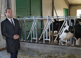 Рабочая поездка председателя правительства России Дмитрия Медведева в Краснодарский край. Председатель правительства России Дмитрий Медведев во время посещения молочно-товарной фермы агрохолдинга "Кубань", который входит в число крупнейших агрокомпаний России.
