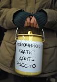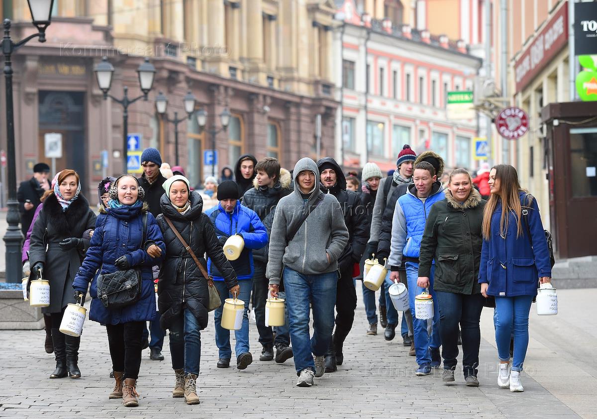 Участники акции "Марш пустых бидонов", организованной общественной организацией "Правда о еде".