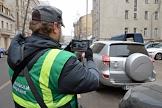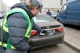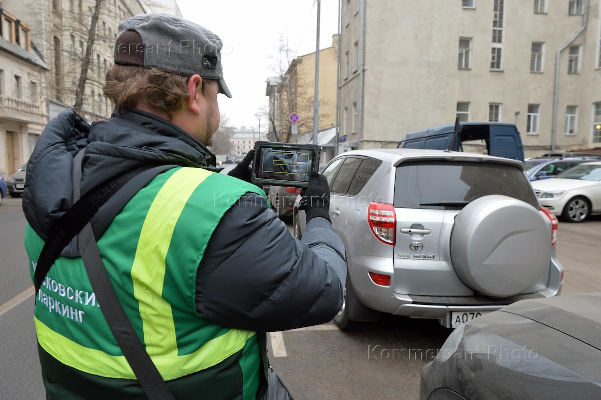Сотрудник Московского паркинга во время работы на улице 2-я Тверская-Ямская.
