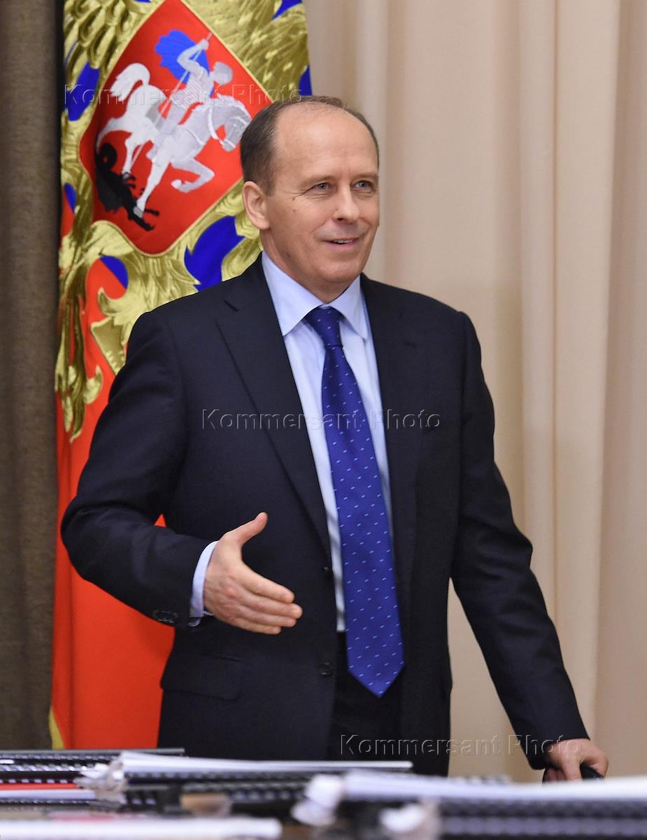 Рабочая поездка президента России Владимира Путина в Сочи. Директор Федеральной службы безопасности (ФСБ) Александр Бортников перед началом совещания по вопросам развития оборонно-промышленного комплекса в резиденции "Бочаров ручей".