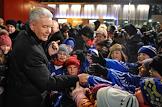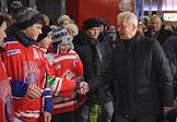 Мэр Москвы Сергей Собянин (справа) с юными хоккеистами на церемонии открытия самого большого в мире искусственного катка на Выставке достижений народного хозяйства (ВДНХ).