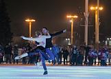 Самый большой в мире искусственный каток открылся на Выставке достижений народного хозяйства (ВДНХ). Выступление фигуристов.