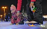 Самый большой в мире искусственный каток открылся на Выставке достижений народного хозяйства (ВДНХ). Дети на катке.