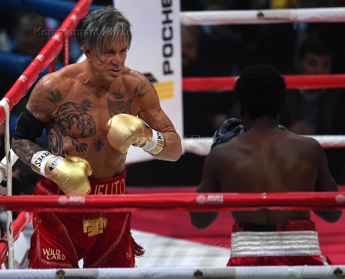 Американский актер и боксер Микки Рурк, вернувшийся в профессиональный бокс, перед поединком по боксу с американским боксером Элиоттом Сеймуром в ГКЦЗ "Россия" в Лужниках.