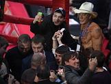 Американский актер и боксер Микки Рурк (в центре), вернувшийся в профессиональный бокс, после поединка по боксу с американским боксером Элиоттом Сеймуром в ГКЦЗ "Россия" в Лужниках. Микки Рурк победил нокаутом.