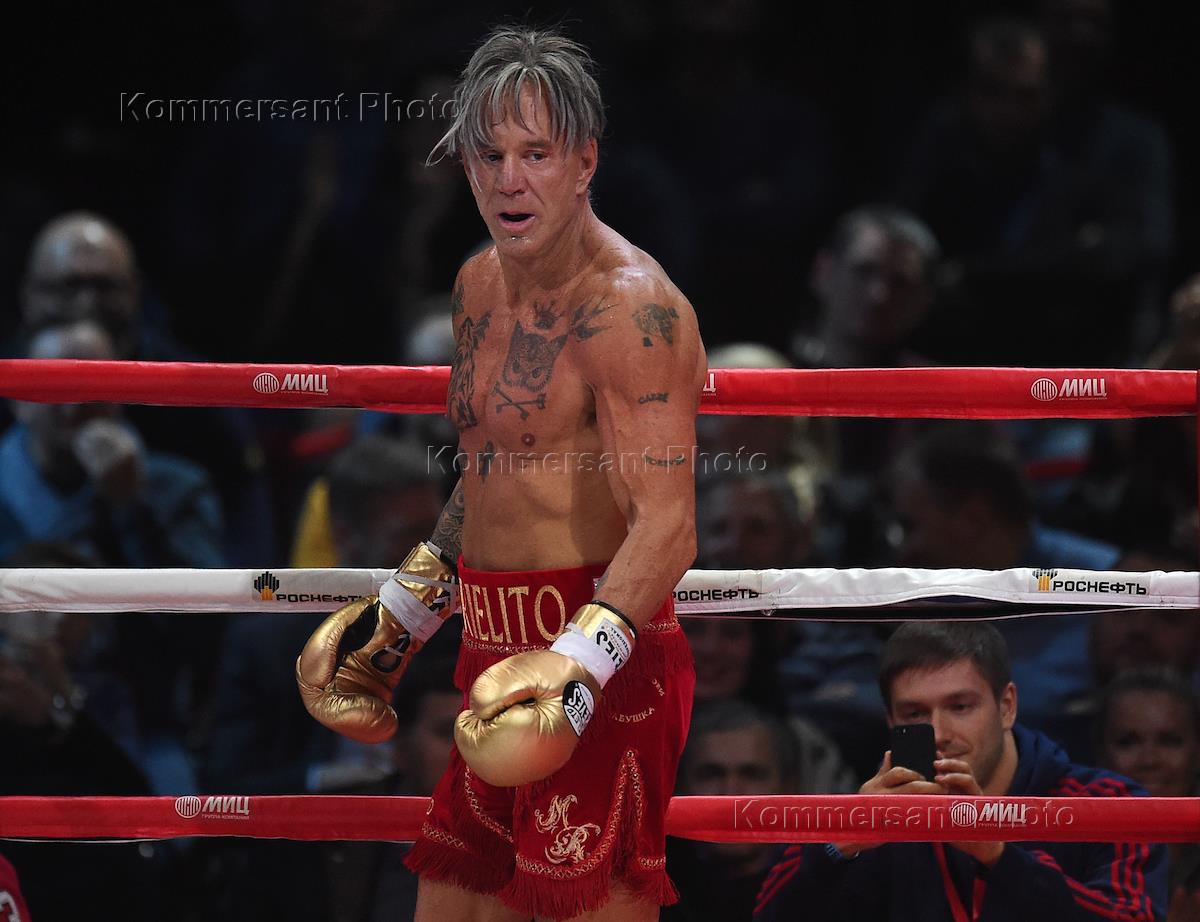Американский актер и боксер Микки Рурк, вернувшийся в профессиональный бокс, во время поединка по боксу с американским боксером Элиоттом Сеймуром в ГКЦЗ "Россия" в Лужниках.