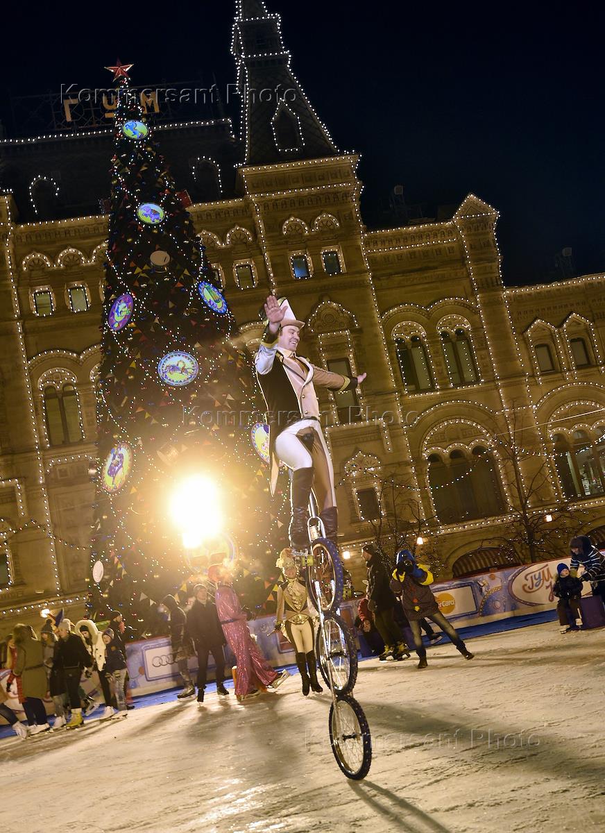 "Гум-Боскопарад". Выступление цирковых артистов на открытии зимнего катка и ярмарки на Красной площади.