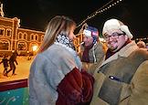 "Гум-Боскопарад". Молодые люди на открытии зимнего катка и ярмарки на Красной площади.