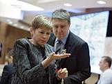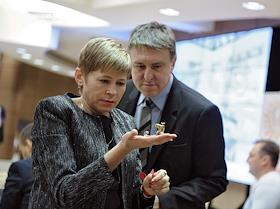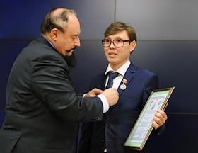 Президент финансово-промышленной корпорации "БИ-ГАЗ-СИ" Александр Воловик (слева) во время торжественного мероприятия, посвященного празднованию Дня Матери в России. Мероприятие прошло в бизнес-центре "Северная Башня" Московского международного делового центра "Москва-Сити".