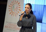 Актриса Эвелина Бледанс (справа) во время торжественного мероприятия, посвященного празднованию Дня Матери в России. Мероприятие прошло в бизнес-центре "Северная Башня" Московского международного делового центра "Москва-Сити".