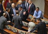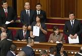 Кандидат на должность главы Министерства финансов Украины Наталья Яресько (в центре), кандидат на должность министра регионального развития, строительства и жилищно-коммунального хозяйства Украины в новом Кабинете министров Геннадий Зубко (справа) на заседании Верховной Рады Украины.
