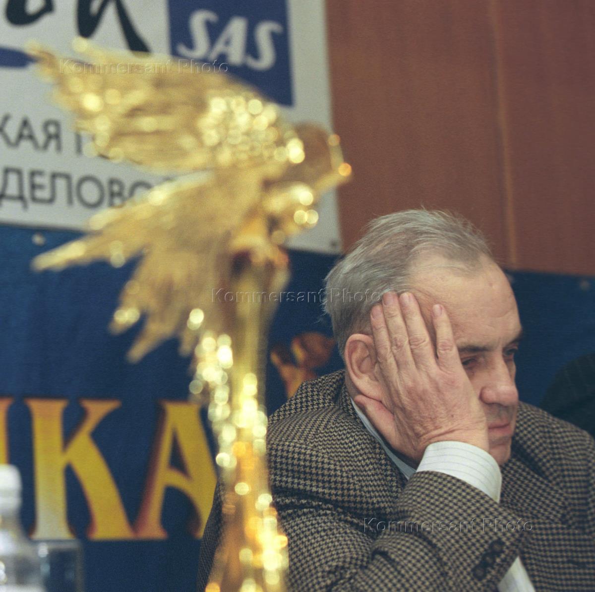 Режиссер Эльдар Рязанов на пресс-конференции, посвященной вручению кинопремии "Ника", в отеле "Рэдиссон-Славянская".