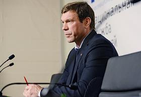 Председатель парламента Новороссии Олег Царев во время пресс-конференции в пресс-центре информационного агентства "Национальная служба новостей".