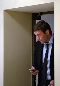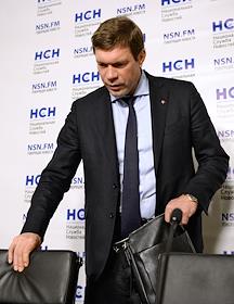 Председатель парламента Новороссии Олег Царев перед началом пресс-конференции в пресс-центре информационного агентства "Национальная служба новостей".