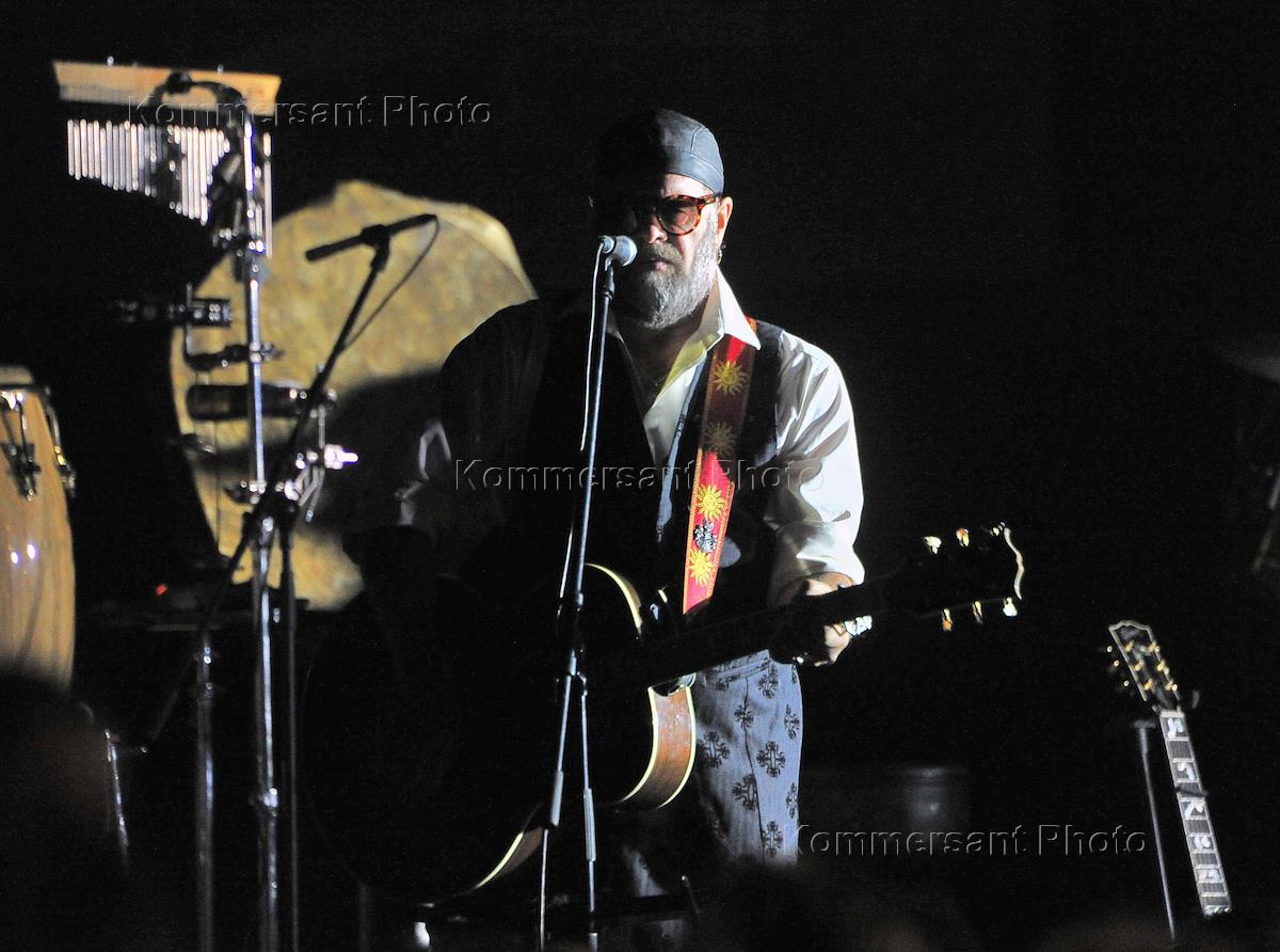 Лидер группы "Аквариум" Борис Гребенщиков во время выступления группы на концерте в концертном зале "Крокус Сити Холл"(Crocus City Hall).