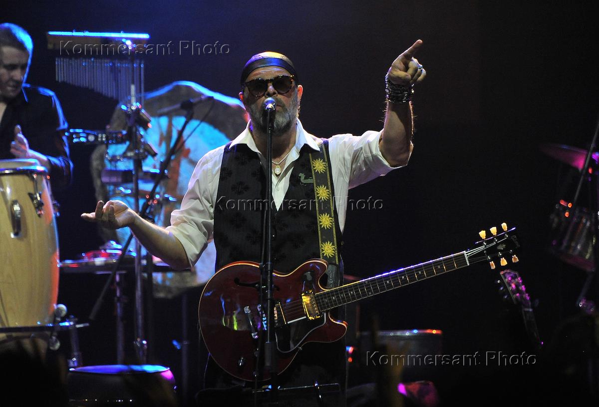 Лидер группы "Аквариум" Борис Гребенщиков (справа) во время выступления группы на концерте в концертном зале "Крокус Сити Холл"(Crocus City Hall).