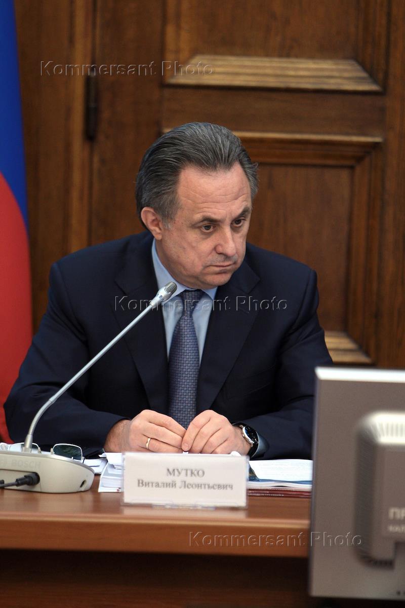 Министр спорта, туризма и молодежной политики Виталий Мутко (слева) и губернатор Калининградской обасти Николай Цуканов (справа) во время официальной встречи.