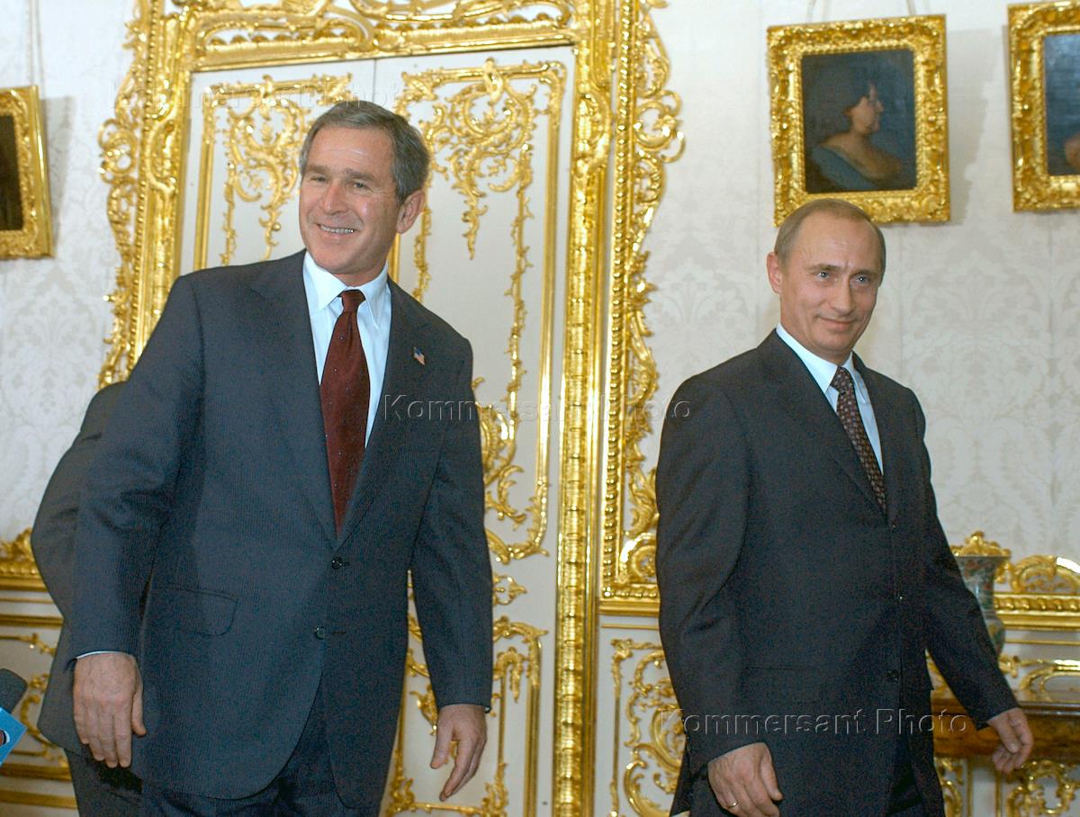 Президент США Джордж Буш во время встречи с Президентом России Владимиром Путиным в Екатерининском дворце государственного музея-заповедника "Царское Село" в Пушкине.