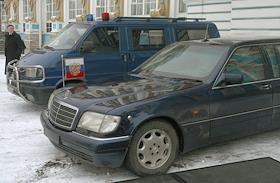 Russian President Vladimir Putin Mercedes linousine parked outside the Catherine Palace in the town of Pushkin outside St.-Petersburg.