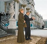 US President George W. Bush is shown around Catherine Palace in Tsarskoye Selo outside St.Petersburg on his visit to Russia.
