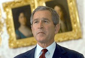 US President George W. Bush arrives at the Catherine Palace, in Tsarskoye Selo outside St.Petersburg, on his visit to Russia.