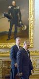 US President George W. Bush (right) is shown around Catherine Palace in Tsarskoye Selo outside St.Petersburg by his Russian counterpart Vladimir Putin (left).