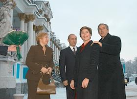 Russian President Vladimir Putin (right) and his wife Lyudmila meet US President George W. Bush and the US 1st lady Laura Bush at the Catherine Palace in Tsarskoye Selo outside St.-Petersburg.
