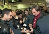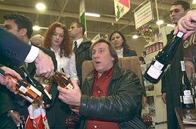French actor Gerard Depardieu signs autographs surrounded by his Russian admirers.