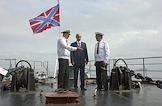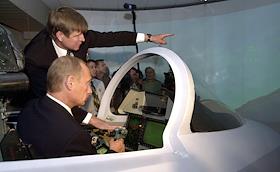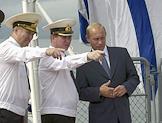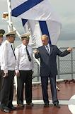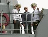 Russian president Vladimir Putin (left) visits a Russian Navy ship.