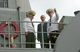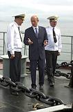 Russian president Vladimir Putin (centre) visits a Russian Navy ship.
