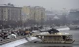 Заместитель мэра Москвы в правительстве Москвы по вопросам жилищно-коммунального хозяйства и благоустройства Петр Бирюков (слева) и статс-секретарь - заместитель министра обороны России Николай Панков (в центре) на церемонии открытия многофункционального причального комплекса с вертолетной площадкой на Фрунзенской набережной.