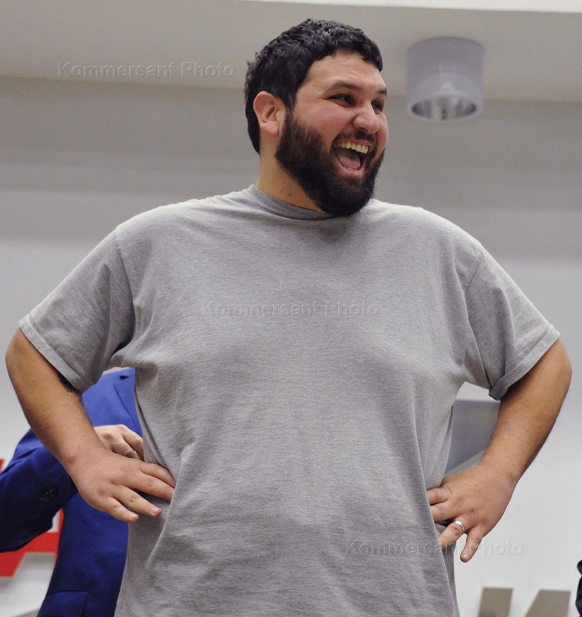 Процедура взвешивания боксеров перед международным боксерским шоу THE REAL BOXING, кульминацией которого станет поединок за титул чемпиона мира по версии WBA во втором среднем весе (до 76,2 кг) между российским боксером Федором Чудиновым и австралийским боксер Беном МакКлухом, прошла в холле стадиона "Арена Химки". Президент Российской ассоциации байкеров Александр Залдостанов перед началом взвешивания в холле стадиона "Арена Химки".