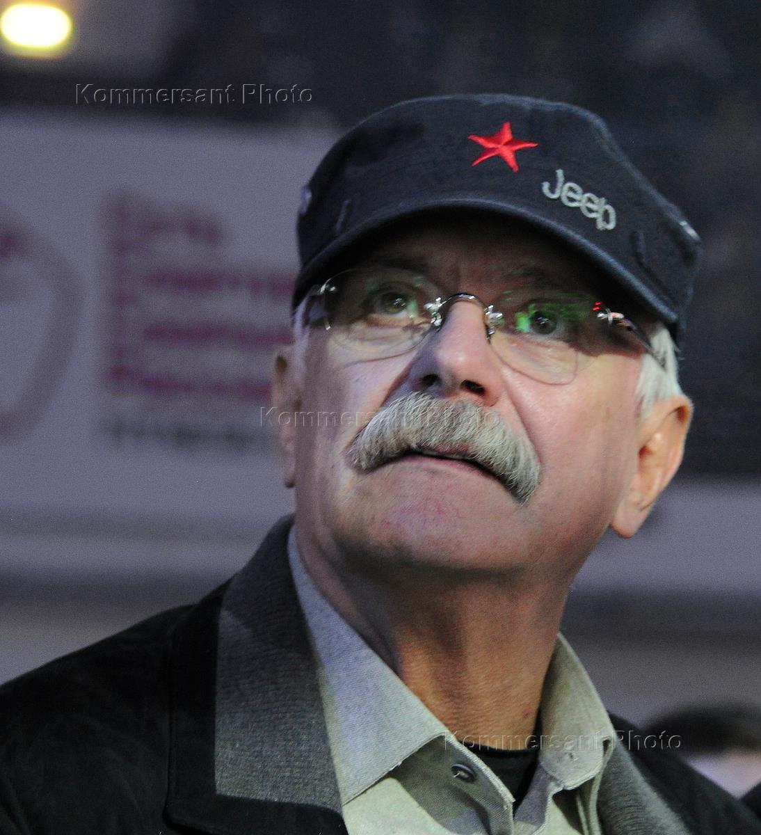 Международное боксерское шоу "THE REAL BOXING". Кинорежиссер, председатель Союза кинематорграфистов России Никита Михалков на трибуне болельщиков во время боя между российским боксером Федором Чудиновым и австралийским боксером Беном МакКлухом за титул чемпиона мира по версии WBA во втором среднем весе (до 76,2 кг) на арене стадиона "Динамо в Крылатском".