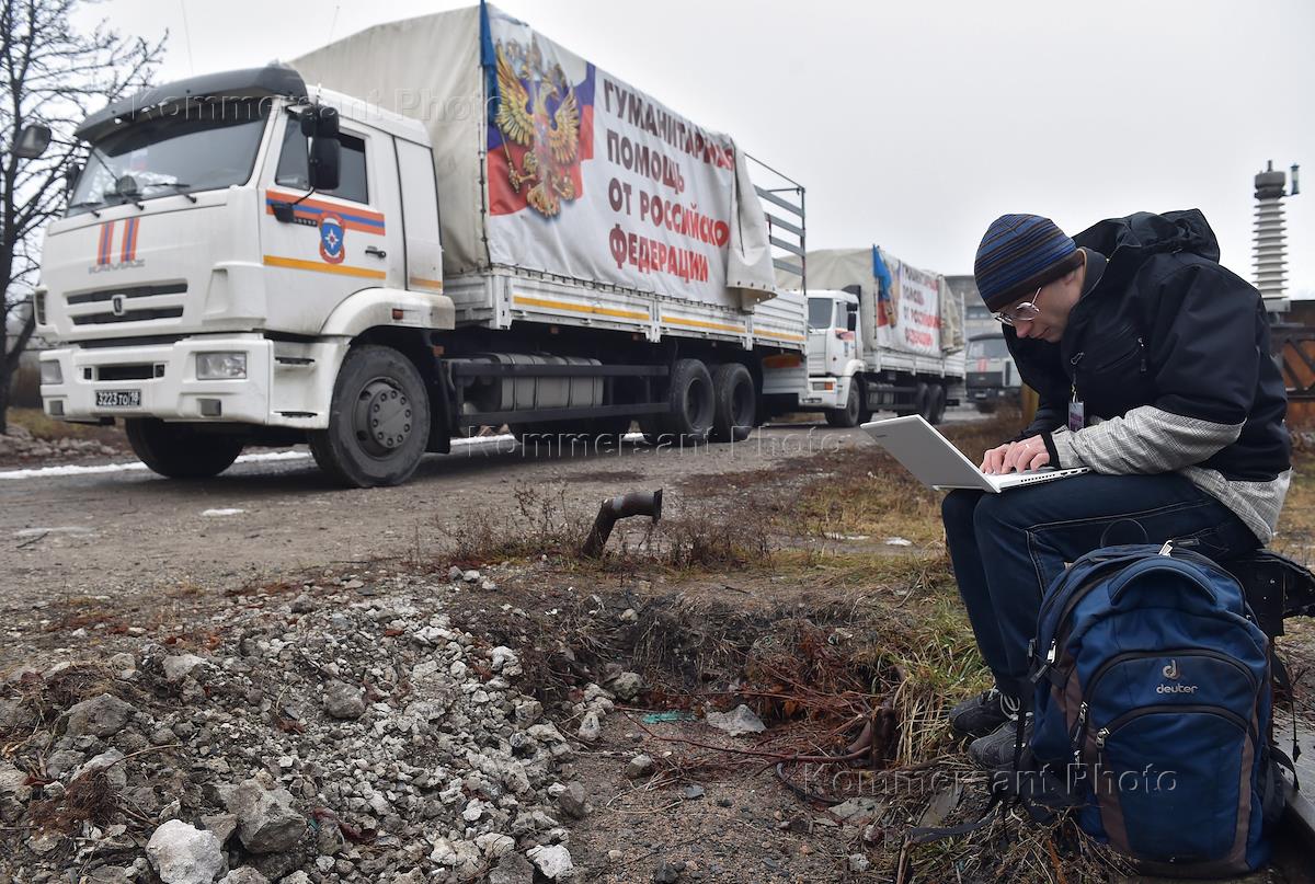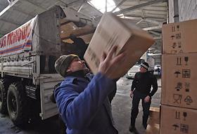 Девятая по счету автоколонна МЧС с гуманитарной помощью для Донбасса.