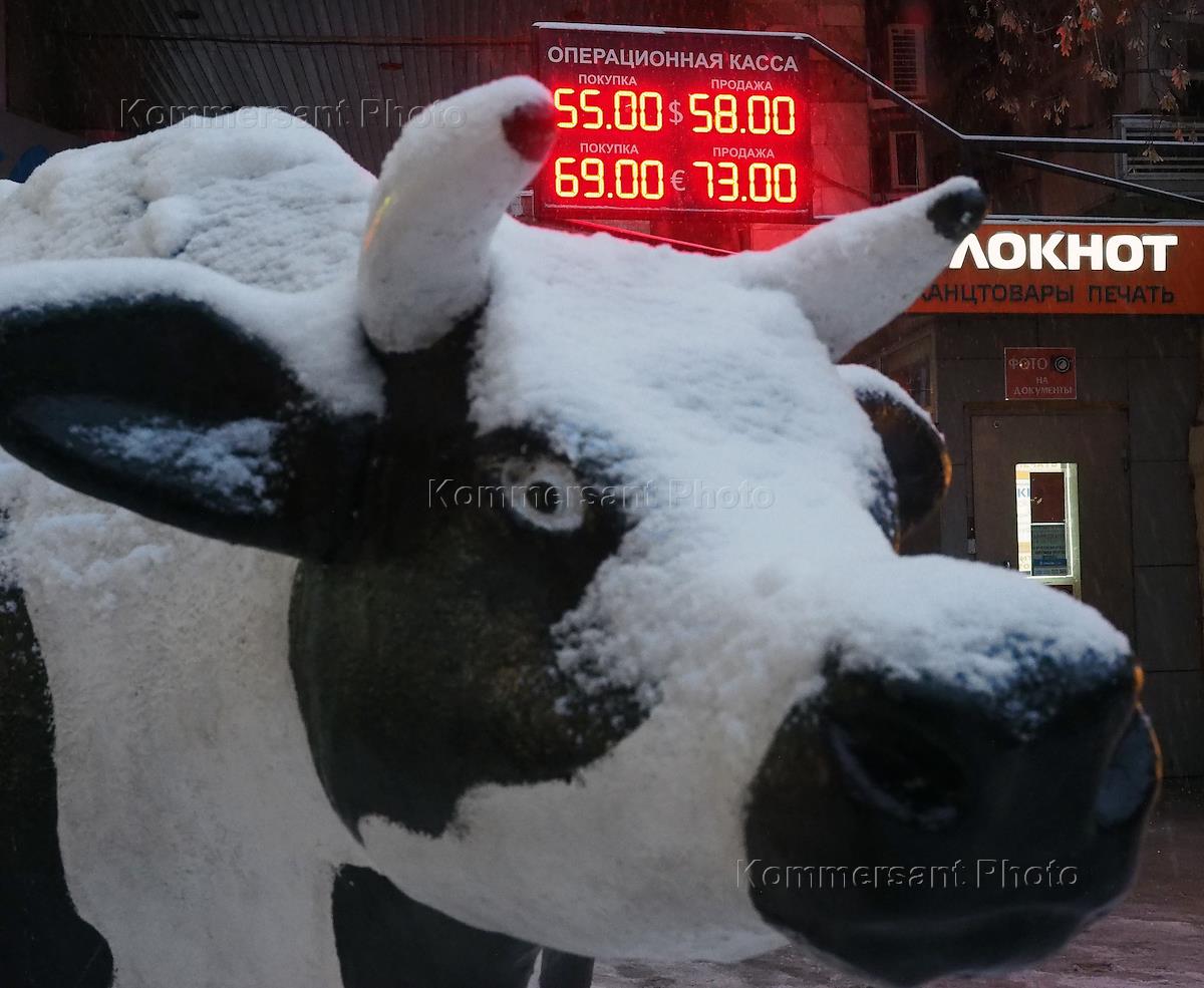Жанровая фотография. Электронное табло с курсом обмена валют. Операционная касса. Скульптура коровы у кафе "Му-Му".