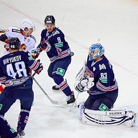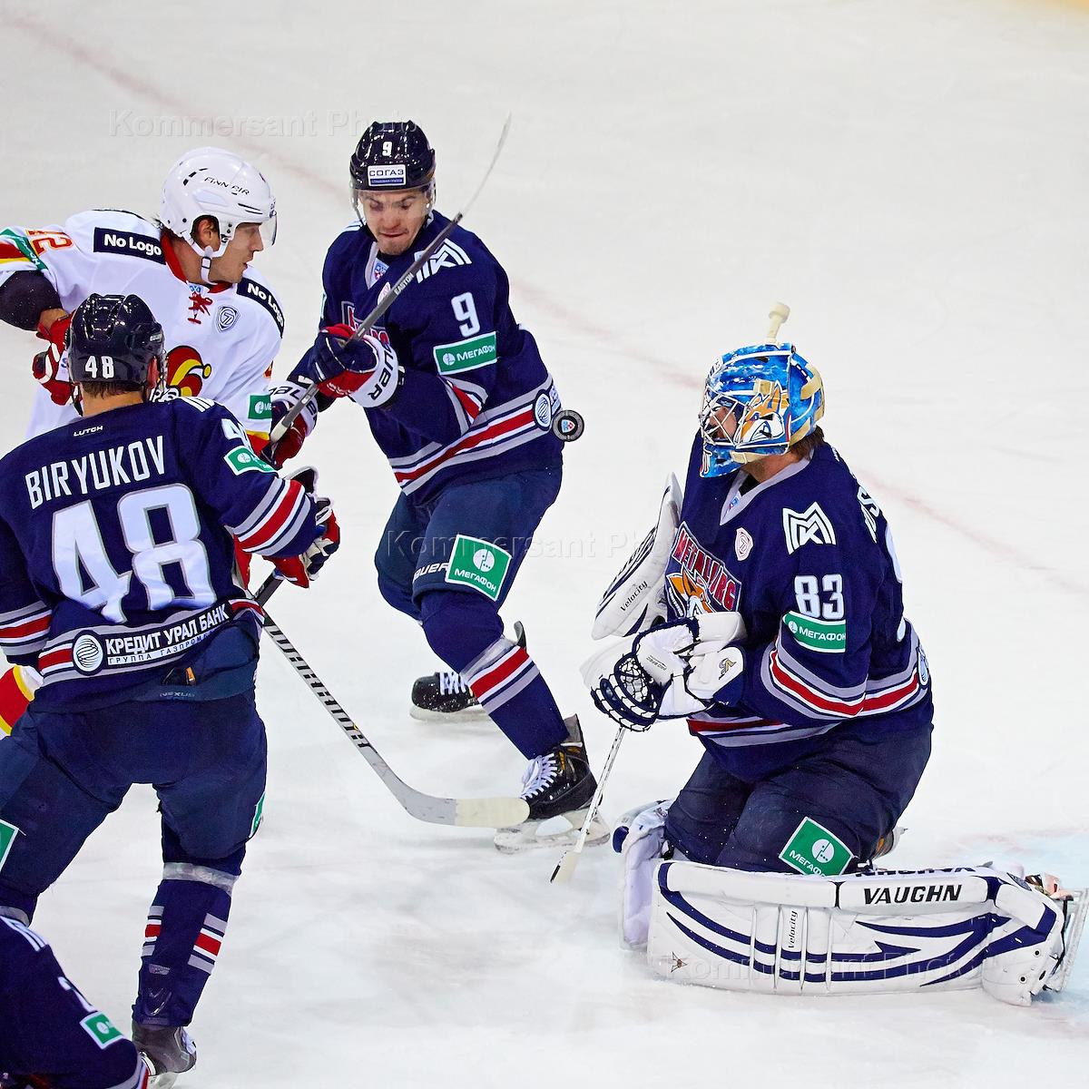 Континентальная хоккейная лига (КХЛ). Сезон 2014/15. Матч между командами "Металлург" (Россия, Магнитогорск) и "Йокерит" (Финляндия, Хельсинки).