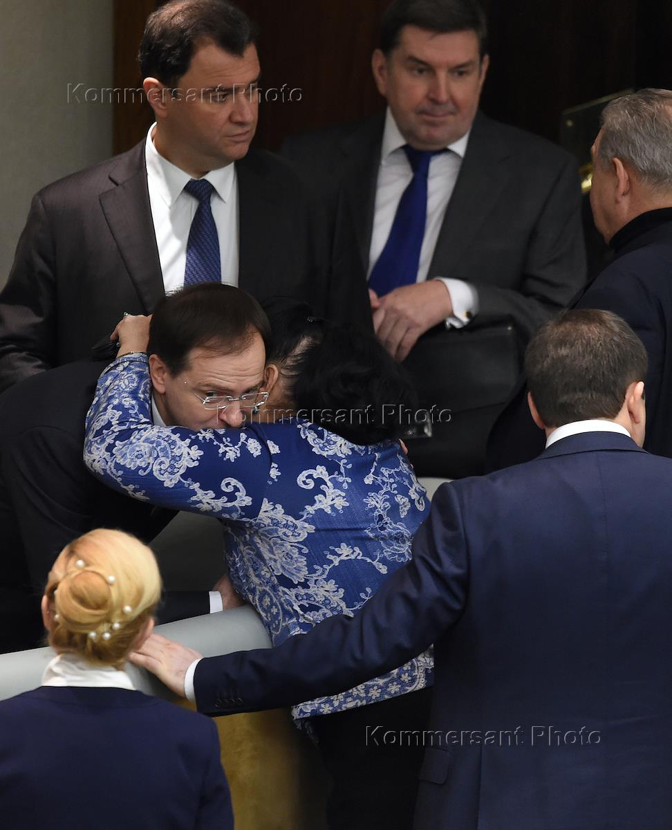 Russian Minister of culture Vladimir Medinsky is during the plenary sitting of the Russian State Duma.