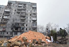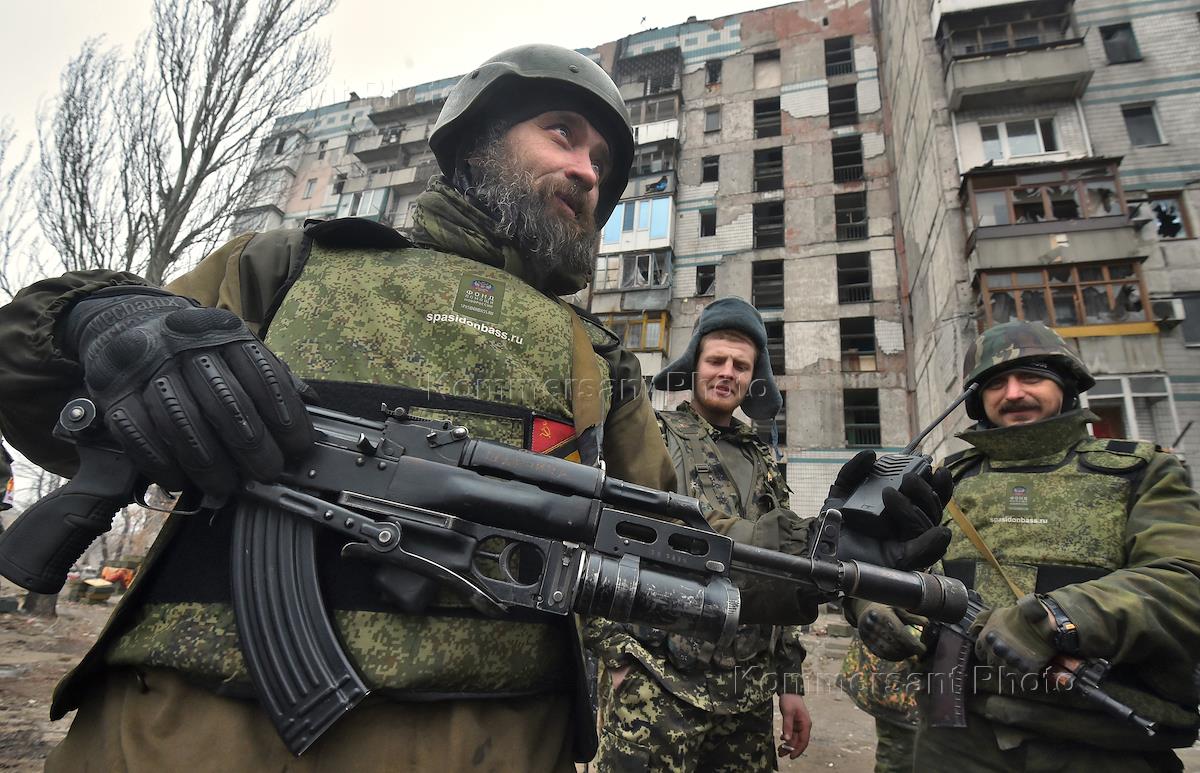 Политическая ситуация в Донецкой области. Ополченцы батальона "Восток" на улице Стратонавтов ближайщей к аэропорту Донецка.