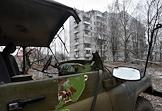Политическая ситуация в Донецкой области. Ополченцы батальона "Восток" на улице Стратонавтов ближайшей к аэропорту Донецка.