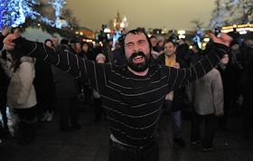 Торжественная церемония зажигания хануки прошла на площади Революции. Главный раввин России Берл Лазар во время церемонии.