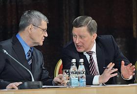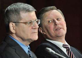 Генеральный прокурор России Юрий Чайка (слева) и руководитель администрации президента России Сергей Иванов (справа) на совещании по вопросам совершенствования госконтроля в "Президент отеле".